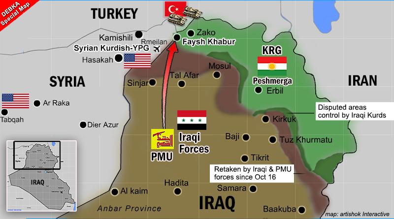 وقال العبادي إن الهدف الرئيسي من العملية هو السيطرة على مدينة القائم، وهي آخر مدينة في العراق في أيدي داعش. ومع ذلك، فإن مصادر عسكرية لديبكا تفيد أن المعارك ضد داعش تتم أساساً من قبل مقاتلي القبائل العربية، وتقدمهم نحو القائم بطيء جداً. وتحول الجيش العراقي والميليشيات العراقية الشيعية شمالاً، في حين تحركوا على طول الحدود العراقية السورية. وفي يوم السبت ٢٨ أكتوبر وصلت هذه القوات إلى معبر فيشخابور الحدودي، وأجبرت قوات البيشمركة الكردية على الانسحاب من هناك. وهكذا استكملت القوات العراقية والقوات التابعة للقيادة الإيرانية استيلاءها على المنطقة الشمالية من الحدود العراقية السورية. وتم التخطيط للعملية العسكرية برمتها وتنفيذها تحت القيادة المباشرة للقائد العام الإيراني قاسم سليماني.